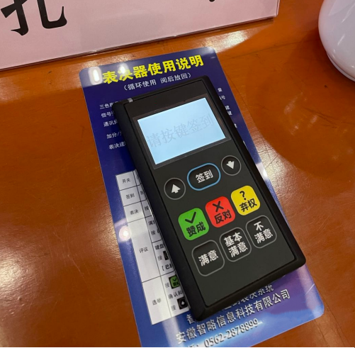 2、電子表決:會(huì)議電子表決系統(tǒng)的表決器,具有“贊成”、“反對(duì)”、“棄權(quán)”等按鍵鮮明,操作簡易,待機(jī)持久,會(huì)前反復(fù)測試,會(huì)中現(xiàn)場支持。特別適合于市、縣(區(qū))人民代表大會(huì)涉及表決事項(xiàng)時(shí)使用,數(shù)據(jù)準(zhǔn)確,能和大會(huì)主持詞、顯示屏同步協(xié)調(diào)使用,頗受“人代會(huì)”的歡迎和好評(píng)。